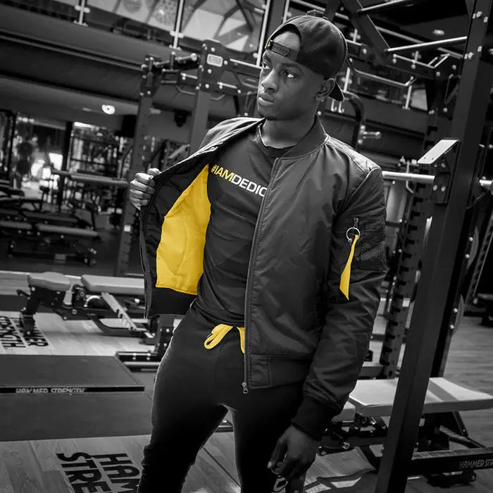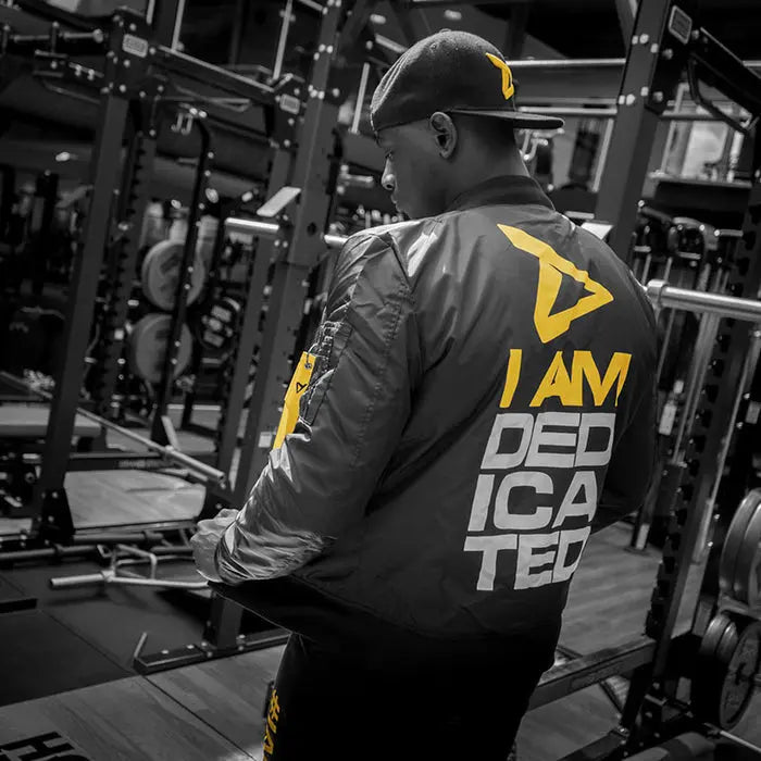 Dedicated Bomber Jacket är en slitstark och bekväm jacka i klassisk bomberstil – perfekt för dig som vill bära din träningsmentalitet även utanför gymmet. Med en tight passform, en iögonfallande “I Am Dedicated”-logga på ryggen och distinkta detaljer som gul insida och armficka med dragkedja, får du en jacka som kombinerar stil med funktion. Jackan är tillverkad i 100 % polyester och rekommenderas i en storlek större än vanligt för optimal komfort.