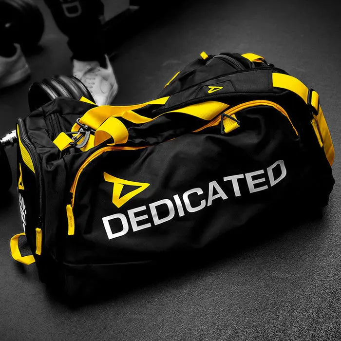 Dedicated Duffle Bag är den ultimata träningsväskan för dig som behöver utrymme, struktur och slitstyrka i ett. Med en längd på hela 64 cm, flera inner- och ytterfack samt ett separat ventilerat fack för skor eller smutstvätt får du med allt från handdukar och ombyte till kosttillskott och shakers. Väskan är tillverkad av ett lätt men extremt hållbart material som står emot väta och slitage. Med både vadderad axelrem och praktiska bärhandtag kan du bära den bekvämt oavsett hur tungt du packar.