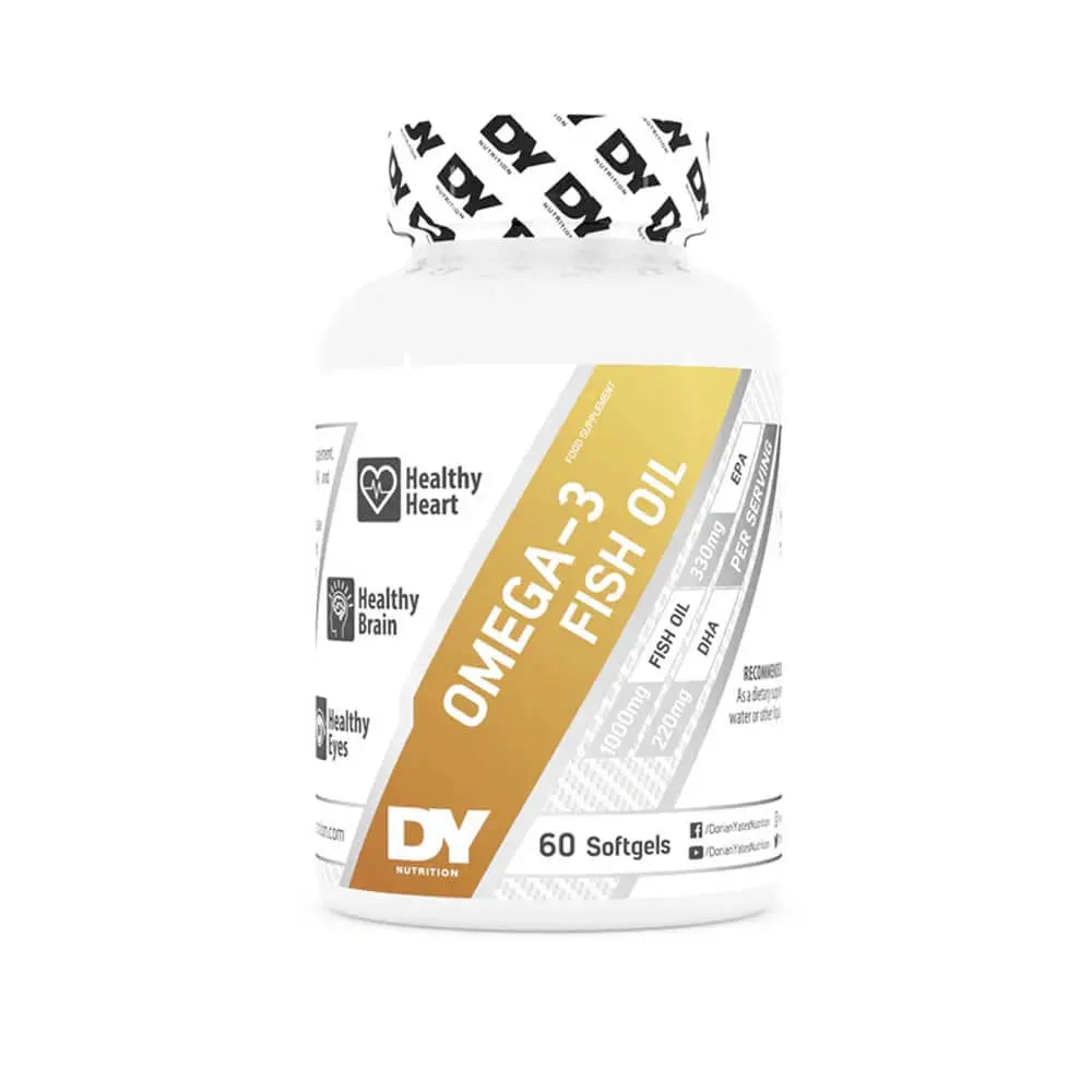 DY Nutrition Omega 3 Fish Oil är ett kvalitativt omega-3-tillskott framtaget för att främja hjärthälsa, blodtryck och allmänt välbefinnande. Varje kapsel innehåller 330 mg EPA och 220 mg DHA – två essentiella fettsyror med bevisade hälsoeffekter. Formulan är ren, utan onödiga tillsatser, och särskilt utformad för att möta behoven hos aktiva individer och personer som vill stärka sin kropp på ett naturligt sätt. Oavsett om du tränar regelbundet eller vill stötta kroppens funktioner med daglig näring, är detta ett enkelt och effektivt tillskott för din hälsa – från en av världens mest respekterade namn inom fitness, Dorian Yates.