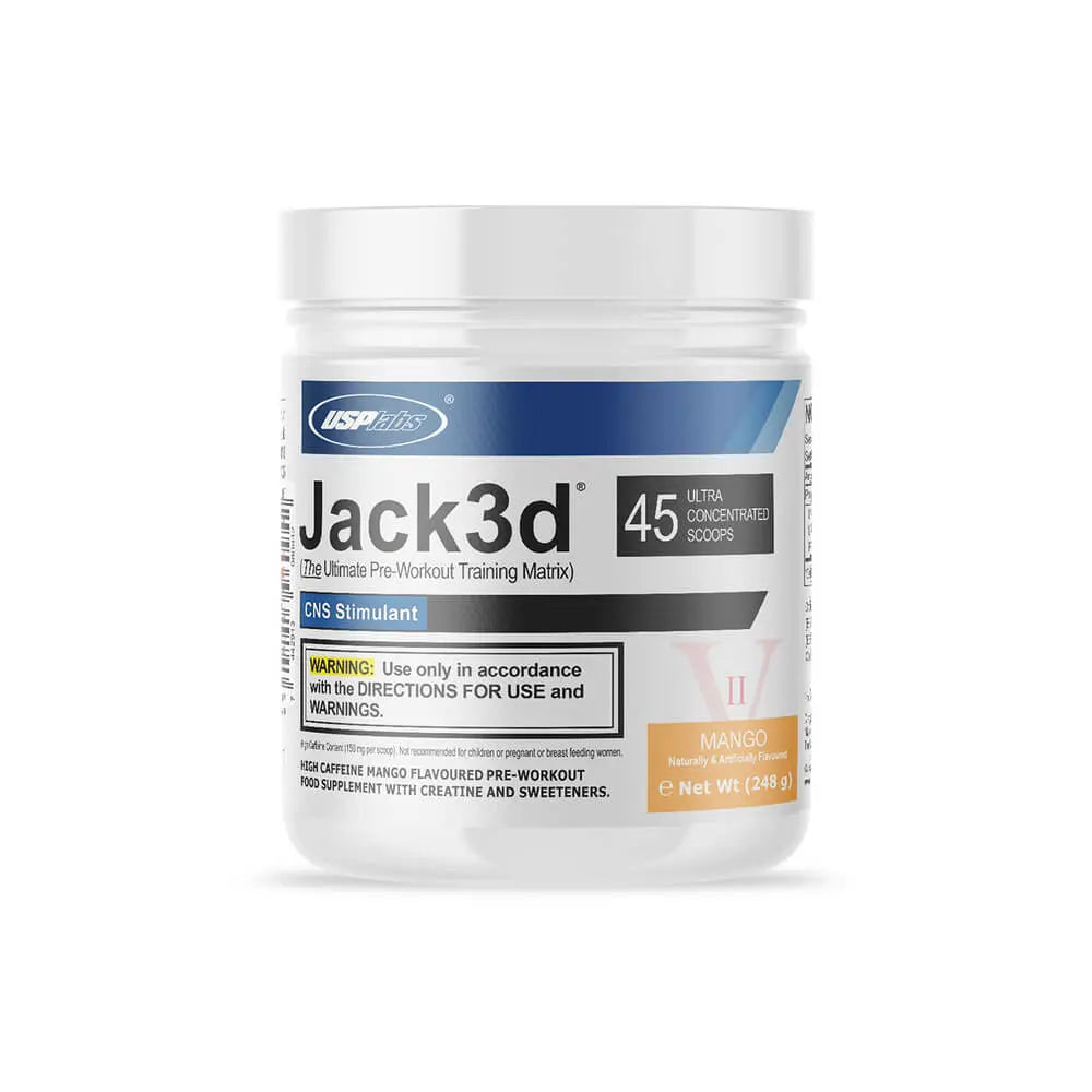 USP Labs Jack3d Advanced är en pre-workout (PWO) framtagen för användning i samband med träning. Formulan kombinerar koffein, kreatin, L-citrullin och beta-alanin i ett sockerfritt pulver. Koffein bidrar till ökad vakenhet och förbättrad koncentration. 45 portioner per burk och flera smaker.