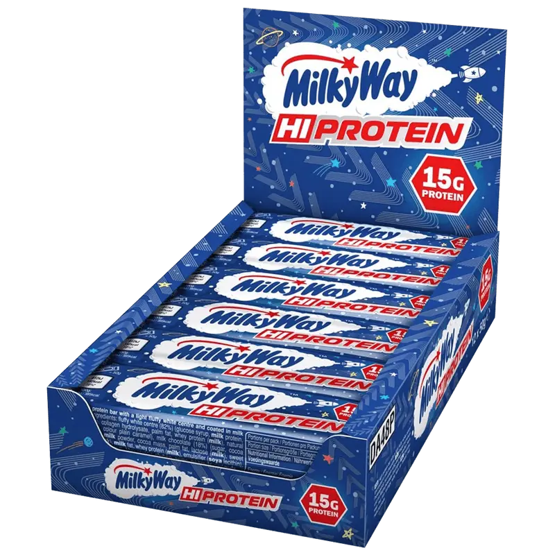 Milky Way HiProtein Bar är det självklara valet för dig som vill ha något gott utan att kompromissa med din träning. Varje bar innehåller 15 gram protein för att stödja muskeluppbyggnad och snabb återhämtning efter träning. Med endast 192 kalorier passar den perfekt i en balanserad kosthållning – och det bästa av allt? Du får fortfarande den klassiska Milky Way-smaken som du älskar. Den är dessutom individuellt förpackad, vilket gör den enkel att ta med till gymmet, jobbet eller skolan. Ett proteinrikt mellanmål som smakar som en godisbit – men jobbar för dina mål.