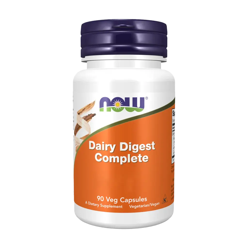 NOW® Dairy Digest Complete är ett målinriktat enzymtillskott utvecklat för att underlätta matsmältningen av mejeriprodukter. Formulan innehåller en kombination av laktas för att bryta ner laktos, proteaser för mejeriproteiner samt lipaser för att spjälka mejerifetter. Tillsammans bidrar dessa enzymer till att minska obehag som uppblåsthet, gaser och magknip – vanliga symtom vid laktos- och mejerikänslighet. Produkten är helt vegetarisk/vegansk, kosher och tillverkad i en GMP-certifierad anläggning. Ett utmärkt stöd för dig som vill njuta av mejeriprodukter med bibehållen matsmältningskomfort.