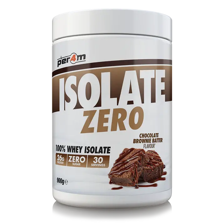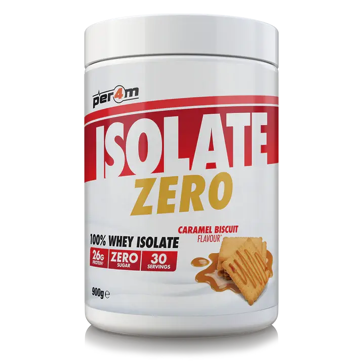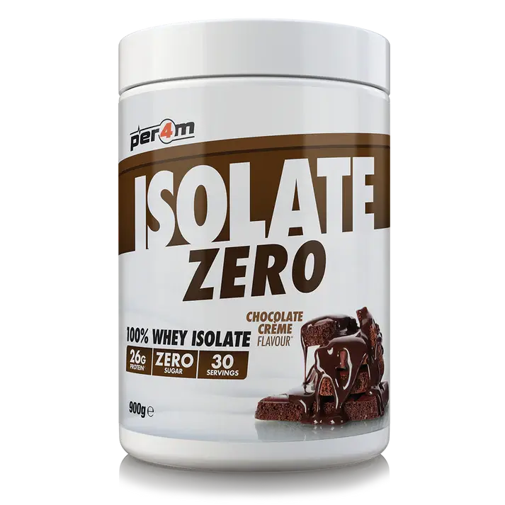 PER4M Isolate Zero är ett högkvalitativt vassleproteinisolat framtaget för dig som vill ha maximalt protein med minimalt socker och kalorier. Varje portion innehåller 25–27 g lättupptagligt protein från europeiska gräsbetande kor och mindre än 0,5 g socker – vilket gör den optimal för muskeluppbyggnad, återhämtning och viktkontroll. Med bara 106–111 kcal per shake passar den perfekt som ett proteinrikt mellanmål, efter träning eller som stöd vid diet. Välj mellan över 10 krämiga smaker och få i dig det du behöver – utan att kompromissa.