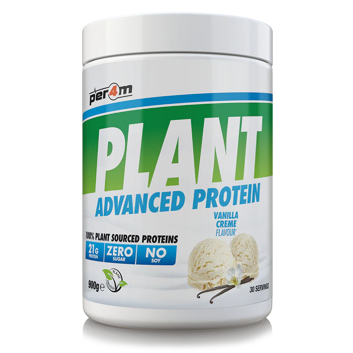 PER4M Plant Protein är ett växtbaserat proteintillskott för dig som vill ha ett kraftfullt proteinintag utan animaliska ingredienser. Varje portion innehåller 21 gram protein från 100 % vegetabiliska källor – utmärkt för att stödja muskeluppbyggnad, återhämtning och en aktiv livsstil. Produkten är fri från mjölk, gluten och soja, vilket gör den skonsam för magen och lämplig för både allergiker och veganer. Med mindre än 1 gram socker per portion och ett brett urval av smaker, kombinerar PER4M Plant Protein näring och njutning i varje shake. Den lättblandade formulan gör det enkelt att få i sig högkvalitativt protein när som helst under dagen.