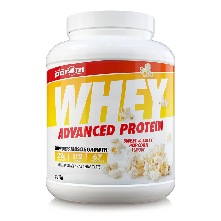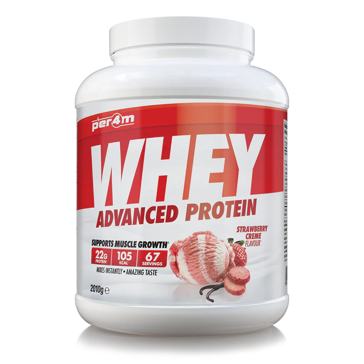 PER4M Whey Protein är ett högkvalitativt proteinpulver som kombinerar effektiv återhämtning med en riktigt god smakupplevelse. Varje portion innehåller 20–22 gram snabbt absorberande protein från vassle och mjölk, vilket gör det perfekt både efter träning och som proteinrikt mellanmål. Med endast 102–115 kcal per dos passar det även dig som vill hålla koll på kaloriintaget utan att tumma på näringsvärdet. Produkten löser sig lätt i vatten eller mjölk utan klumpar och finns i över 30 lyxiga smaker – från klassisk choklad till kreativa dessertvarianter. PER4M Whey Protein är dessutom ett utmärkt alternativ för vegetarianer som söker ett komplett proteintillskott.
