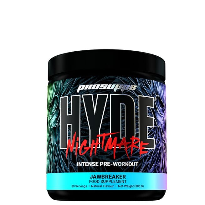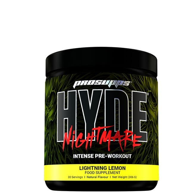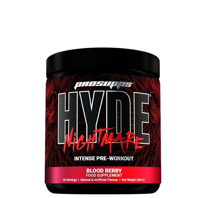 Hyde Nightmare från Pro Supps är en intensiv pre-workout framtagen för atleter som kräver maximal prestation varje gång de tränar. Den kliniskt doserade formulan kombinerar koffein, beta-alanin, kreatin och B-vitaminer för att öka styrka, uthållighet och mental skärpa. Med tillsatta elektrolyter som natrium och kalium hjälper den även till att upprätthålla vätskebalansen under långa och tuffa pass. Oavsett om du satsar på explosiv styrketräning eller vill pressa din uthållighet till max, ger Hyde Nightmare dig verktygen för att prestera på topp.