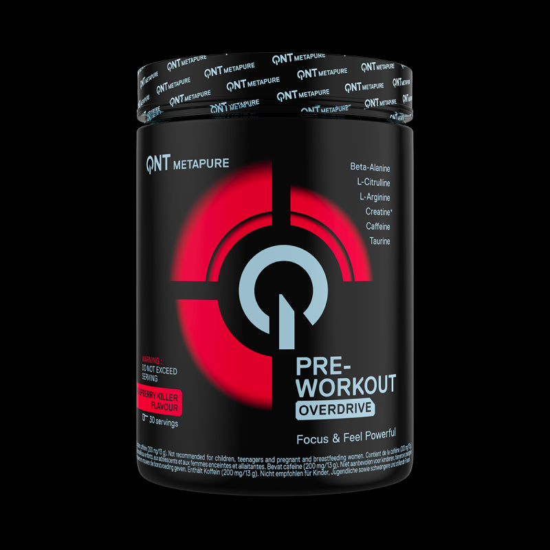 QNT Pre-Workout Overdrive är formulerad för dig som vill lyfta varje träningspass till en ny nivå. Varje portion innehåller 4 g beta-alanin för ökad uthållighet, 1 g kreatinmonohydrat för kraft och 200 mg koffein för explosiv energi och fokus. Den är dessutom berikad med L-citrullin, L-arginin och taurin för att maximera pump, blodflöde och mental skärpa. Med sin lättlösliga formula och smaker som Mango Massacre, Raspberry Killer, Sweet Lemonade och Wild Cherry Lime blir varje intag både effektivt och njutbart. Perfekt för dig som tränar tungt, intensivt och vill prestera på topp varje gång.