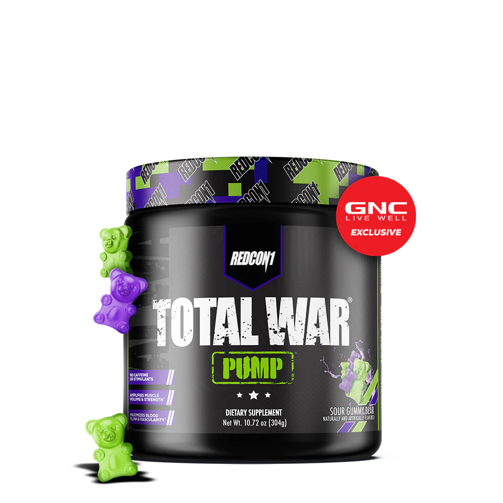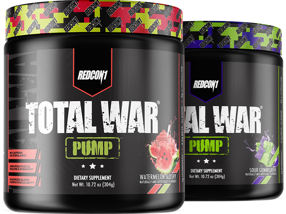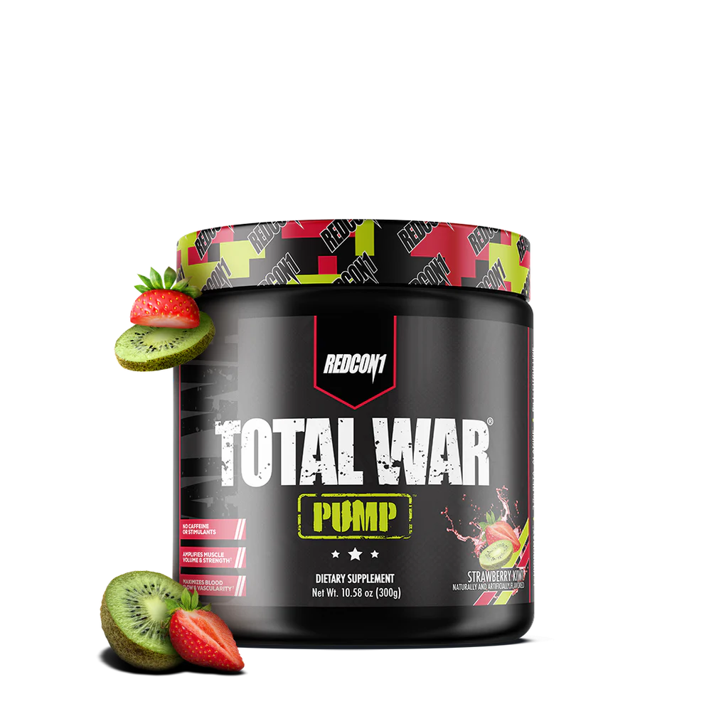 Redcon1 Total War Pump är ett kosttillskott i form av en stimulantfri pre-workout (PWO), avsedd att användas i samband med träning. Varje portion innehåller 6 g L-citrullin, 3,2 g beta-alanin och 1 g Hydromax (glycerol), tillsammans med bland annat L-tyrosin, rhodiola-extrakt och Himalayasalt. Produkten är framtagen för dig som vill ha en PWO utan koffein eller andra stimulanser. Pulvret blandas enkelt med vatten och en burk innehåller cirka 20 portioner.