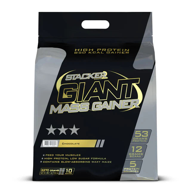 Stacker2 GIANT Mass Gainer är formulerad för dig som vill bygga maximal muskelmassa utan att öka kroppsfettet. Varje portion levererar hela 850 kalorier och 53 gram protein från en kraftfull blandning av vassle, kasein och mjölkprotein. Tillsammans med långsamma kolhydrater som waxy maize och MCT-olja ger denna gainer både snabb och långvarig näring till musklerna. Med låg sockerhalt och hela 12 g BCAA per dos är GIANT ett smart val för seriös vikt- och styrkeökning.