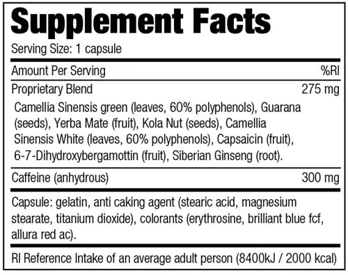 • Innehåller koffein, guarana & grönt te-extrakt