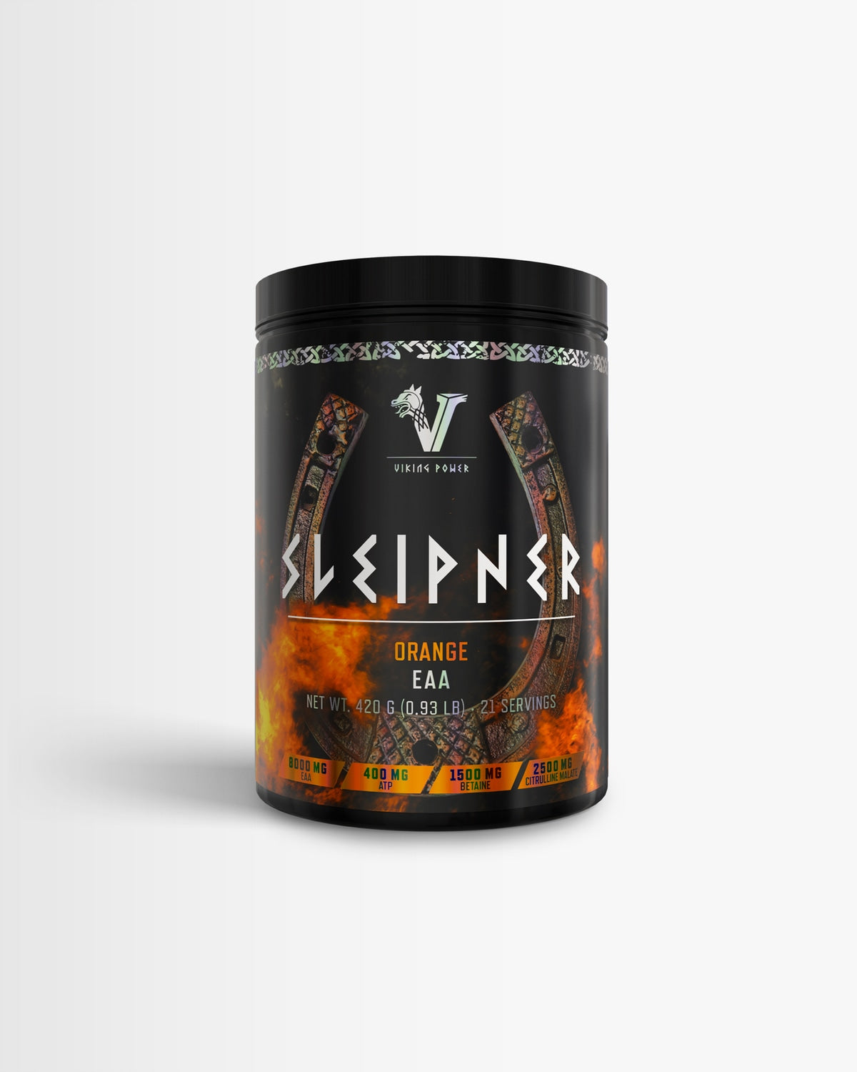 Viking Power Sleipner är en avancerad intra-workout för seriösa atleter som kräver maximal prestation och återhämtning – även under diet eller tuffa träningspass. Med 8000 mg essentiella aminosyror per portion, 400 mg ATP samt citrullinmalat, betain och taurin får du ett tillskott som driver blodflöde, muskelpump och energitillförsel till nästa nivå. Sleipner är även förstärkt med kolin och glutamin för fokus och muskelreparation, samt C-vitamin, B6 och B12 för att minska trötthet. Elektrolyter bidrar till vätskebalans och bibehållen prestation genom hela passet. Sleipner är mer än ett EAA-tillskott – det är din nya träningsmotor.
