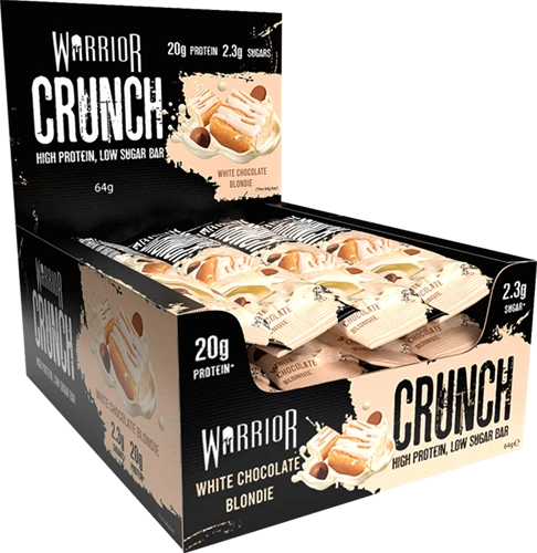 Warrior Crunch Protein Bar är ett smakrikt och krispigt mellanmål för dig som vill få i dig högkvalitativt protein utan att tumma på smaken. Varje bar innehåller hela 20 g protein, endast 2,3 g socker och minimalt med kolhydrater – perfekt för en aktiv livsstil eller som återhämtning efter träning. Den flerlagerdesignade baren kombinerar crunch och krämig fyllning för en riktigt tillfredsställande tugga. Oavsett om du är på språng eller behöver ett snabbt, nyttigt snack – Warrior Crunch levererar både näring och smak.